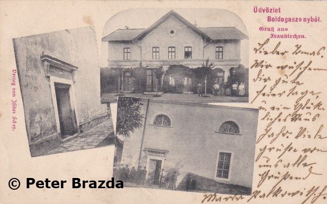Peter Brazda aus Wien stellt dem Verein „Initiative Erinnern Frauenkirchen“ ein neues bisher unbekanntes Bild (zw. 1921–1935) von der Synagoge in Frauenkirchen zur Verfügung. Man erkennt, dass eine Person mit einem Gebetstuch das Schofahorn bläst. Bild links: Der Eingang zur Frauenempore in der Synagoge.